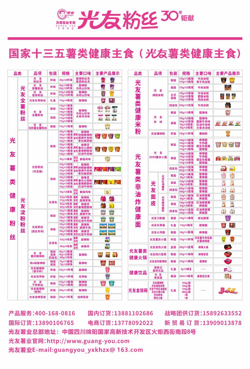 光友薯業(yè)創(chuàng)建于1992年10月18日。是一家以薯類深加工為主的健康產(chǎn)業(yè)型、科技產(chǎn)業(yè)型民營企業(yè),以紅薯、紫薯、馬鈴薯為主要原料,研發(fā)、加工、銷售薯類方便粉絲、煮食粉絲、非油炸薯類方便面等健康美味方便主食。